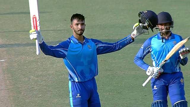ക്യാപ്റ്റൻ ആർ സമർഥ് (192), ദേവ്ദത്ത് പടിക്കൽ (101) എന്നിവരുടെ സെഞ്ച്വറികളുടെ ബലത്തിലാണ് കർണാടക കൂറ്റൻ സ്കോറിലെത്തിയത്. 43-ാം ഓവറിലാണ് കർണാടകയ്ക്ക് ആദ്യ വിക്കറ്റ് നഷ്ടമാകുന്നത്. അപ്പോഴേക്കും ഓപ്പണിങ് വിക്കറ്റിൽ 249 റൺസ് ചേർത്തിരുന്നു ഇരുവരും. കർണാടകയ്ക്ക് നഷ്ടമായ മൂന്ന് വിക്കറ്റുകളും നേടിയത് എൻ പി ബേസിലാണ്. ദേവ്ദത്ത് നേടുന്ന തുടർച്ചയായ നാലാം സെഞ്ച്വറിയാണിത്.