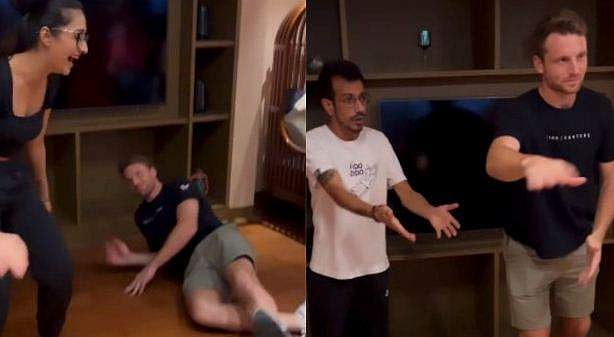 ചഹലിന്റെ ഭാര്യ ധനശ്രീ വര്മയാണ് ചഹലിനേയും ബട്ട്ലറേയും ഡാന്സ് സ്റ്റെപ്പ് പഠിപ്പിക്കുന്നത്. ഡാന്സിന്റെ ഒടുക്കം ചഹലിന്റെ സിഗ്നേച്ചര് പോസും വരുന്നു. 2019 ലോകകപ്പിന് ഇടയില് ബൗണ്ടറി ലൈനില് കിടക്കുന്ന ചഹലിന്റെ വൈറല് പോസാണ് ഡാന്സിന് ഒടുക്കം ബട്ട്ലറും ചഹലും വീണ്ടും കൊണ്ടുവന്നത്.