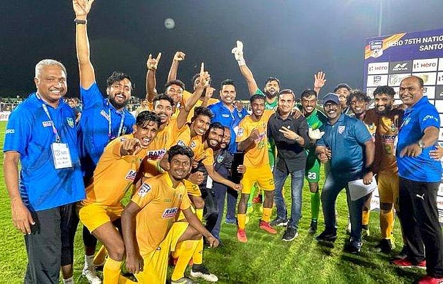 ഫൈനലില് ബംഗാളിനെ പെനാല്റ്റി ഷൂട്ടൗട്ടില് കീഴ്പ്പെടുത്തിയാണ് (54) കേരളം കിരീടത്തില് മുത്തമിട്ടത്. കേരളത്തിന്റെ ഏഴാം കിരീട നേട്ടമാണിത്. ടൂര്ണമെന്റില് ഒരു മത്സരം പോലും തോല്ക്കാതെയാണ് കേരളത്തിന്റെ വിജയം. എക്സ്ട്രാ ടൈമിന്റെ ആദ്യ പകുതി വരെ പിന്നിട്ടു നിന്നശേഷമായിരുന്നു കേരളത്തിന്റെ തകര്പ്പന് വിജയം.