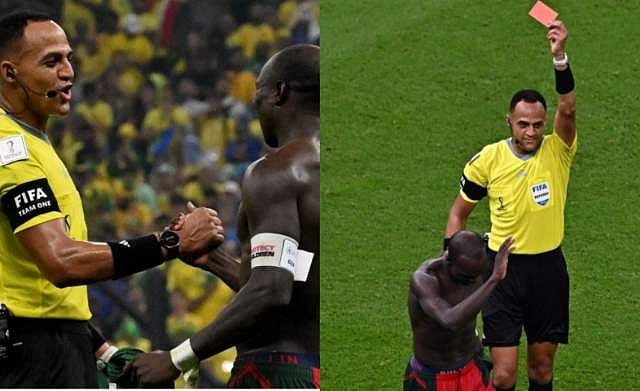ദോഹ: ബ്രസീലിന് എതിരെ ലോകകപ്പില് ഗോള് നേടിയ ആദ്യ ആഫ്രിക്കന് താരം...ലുസൈല് സ്റ്റേഡിയത്തില് ഇഞ്ചുറി ടൈമില് വല കുലുക്കി കാമറൂണിനെ വിന്സെന്റ് അബൂബക്കര് ചരിത്രത്തിന്റെ ഭാഗമാക്കി. ജഴ്സി ഊരി ഗ്യാലറിക്ക് നേരെ കാണിച്ചാണ് അബൂബക്കര് ആഘോഷിച്ചത്...പിന്നാലെ കൈ കൊടുത്ത്, തലയില് തട്ടി അഭിനന്ദിച്ച് റഫറി റെഡ് കാര്ഡും പുറത്തെടുത്തു...