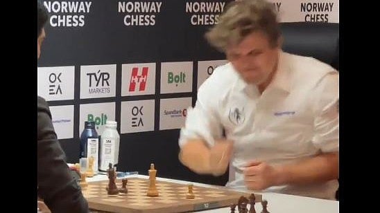 പിന്നാലെയാണ് താരം ശക്തിയായി മേശയില് അടിച്ച് തന്റെ അരിശം തീര്ത്തത്. മത്സര വേദികളില് പൊതുവേ ശാന്തനായി കളിക്കുന്ന താരമാണ് കാള്സന്. താരത്തിന്റെ അപ്രതീക്ഷിത പെരുമാറ്റത്തിന്റെ വിഡിയോ അതിവേഗമാണ് സമൂഹ മാധ്യമങ്ങളില് വൈറലായത്.