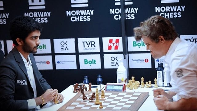 ഓസ്ലോ: നോര്വെ ചെസിലെ ഏറ്റവും പ്രിയപ്പെട്ട നിമിഷം ഏതായിരുന്നു? നിലവിലെ ലോക ചെസ് ചാംപ്യന് ഇന്ത്യയുടെ ഡി ഗുകേഷിനോടുള്ള (D Gukesh) ചോദ്യമുയര്ന്നപ്പോള് ഗുകേഷിനൊപ്പം സദസിലെ എല്ലാവരും ചിരിച്ചു. ക്ലാസിക്കൽ പോരാട്ടത്തില് ആദ്യമായി 5 വട്ടം ലോക ചാംപ്യനായ നോര്വെയുടെ മാഗ്നസ് കാള്സനെ പരാജയപ്പെടുത്തിയ നിമിഷം എന്നായിരുന്നു ഗുകേഷിന്റെ മറുപടി. ഈ സമയത്ത് സദസില് മറ്റൊരാളും ഇരുന്നു ചിരിക്കുന്നുണ്ടായിരുന്നു. മറ്റാരുമല്ല കാള്സന് തന്നെ!
