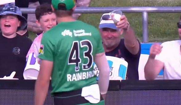 ബിഗ് ബാഷ് ലീഗിലാണ് സംഭവം. ഹൊബാര്‍ട്ട് ഹറികെയ്ന്‍സും മെല്‍ബണ്‍ സ്റ്റാര്‍സും തമ്മിലുള്ള മത്സരത്തിന് ഇടയിലാണ് കൗതുകകരമായ ക്യാച്ച് വന്നത്. ഹൊബാര്‍ട്ട് ഇന്നിങ്‌സിലെ 16ാം ഓവറില്‍ നാലാം പന്ത് ഡേവിഡ് മലന്‍ ഫൈന്‍ ലെഗിന് മുകളിലൂടെ ഗ്യാലറിയിലേക്ക് പറത്തി.