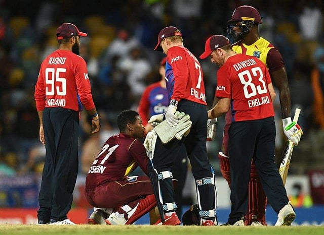 ഒരു ഘട്ടത്തിൽ വിൻഡീസ് എട്ട് വിക്കറ്റ് നഷ്ടത്തിൽ 98 റൺസെന്ന നിലയിലായിരുന്നു. റൊമാരിയോ ഷെഫേർഡ്- ഹുസൈൻ സഖ്യം പിന്നീട് പോരാട്ടം ഇംഗ്ലണ്ട് ക്യാമ്പിലേക്ക് നയിക്കുകയായിരുന്നു. ഷെഫേർഡ് അഞ്ച് സിക്സും ഒരു ഫോറും പറത്തി.
