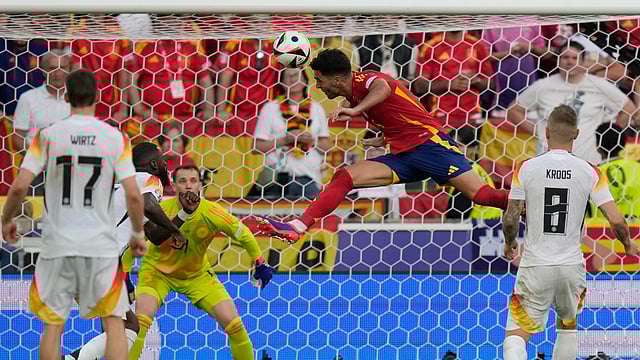 മറുഭാഗത്ത് കയ് ഹവെർട്സിനു ലഭിച്ച അവസരവും മുതലാക്കാൻ സാധിച്ചില്ല. ആദ്യ പകുതിയുടെ അവസാനത്തിൽ ഓൽമോയുടെ ഒരു ലോങ് ഷോട്ടും അതു റീബൗണ്ട് ചെയ്തു വന്നത് ഗോളാക്കാനുള്ള ക്യാപ്റ്റൻ ആൽവരോ മൊറാറ്റയുടെ ശ്രമവും വിജയിച്ചില്ല. 45ാം മിനിറ്റിൽ സ്പാനിഷ് കൗമാര താരം ലമിൻ യമാലിന്റെ ഷോട്ട് നൂയർ കൈയിലാക്കി. ഗോളില്ലാതെ ആദ്യ പകുതി അവസാനിച്ചു.