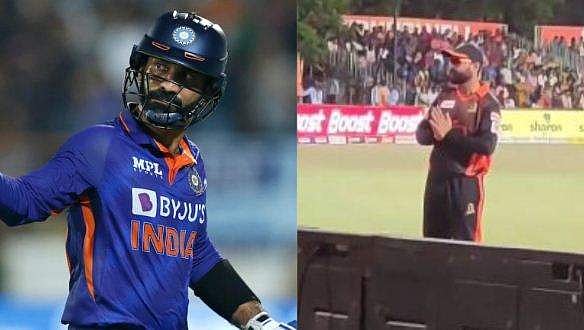 ഇപ്പോൾ ഒരു വീഡിയോ ശ്രദ്ധേയമാകുകയാണ്. മുരളി വിജയ് ഫീൽഡ് ചെയ്യുന്നതിനിടെ ബൗണ്ടറി ലൈനിനു പുറത്ത് ആരാധകർ ദിനേഷ് കാർത്തിക്കിന്റെ പേര് വിളിക്കുന്നതാണ് സാമൂഹിക മാധ്യമങ്ങളിൽ വൈറലായി മാറിയത്.