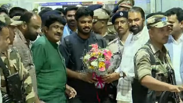 സഞ്ജു എയർപോർട്ടിന് പുറത്ത് എത്തിയതോടെ ആരാധകരുടെ ആവേശവും അതിരുവിട്ടു. ചേട്ടാ,ചേട്ടാ വിളികളോടെയാണ് താരത്തെ ആരാധകർ സ്വീകരിച്ചത്. തനിക്ക് നൽകിയ സ്വീകരണത്തിന് നന്ദി പറഞ്ഞ താരം വീട്ടിലേക്ക് മടങ്ങുകയും ചെയ്തു. സഞ്ജു സാംസണിന് സംസ്ഥാന സര്ക്കാര് തിരുവനന്തപുരത്ത് ഔദ്യോഗികമായി സ്വീകരണം നല്കുമെന്ന് മന്ത്രി വി ശിവന്കുട്ടി നേരത്തെ വ്യക്തമാക്കിയിരുന്നു.
