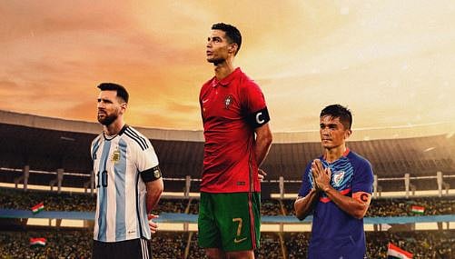 ക്രിസ്റ്റ്യാനോ റൊണാള്ഡോ, ലയണല് മെസി എന്നിവര്ക്കൊപ്പം മെഡല് പോഡിയത്തില് മന്നാമനായി നില്ക്കുന്ന ഛേത്രിയുടെ ചിത്രം ഫിഫ അവരുടെ ലോകകപ്പിന്റെ എക്സ് പേജില് പങ്കിട്ടു. അന്താരാഷ്ട്ര ഫുട്ബോളില് ഏറ്റവും കൂടുതല് ഗോള് നേടിയ താരങ്ങളുടെ പട്ടികയില് ക്രിസ്റ്റ്യാനോ, മെസി എന്നിവര്ക്ക് പിന്നാലെ ഇടം ഛേത്രിക്കുണ്ട്.