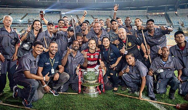 ഫ്‌ളെമംഗോ നായകനായ ഡിയാഗോ റിബാസാണ് കിരീടം ഏറ്റുവാങ്ങിയ ശേഷം ശുചീകരണ തൊഴിലാളികളെ ഗ്രൗണ്ടിലേക്ക് വിളിച്ചുവരുത്തി അവരെ ഒപ്പം നിര്‍ത്തി ട്രോഫിയുമായി ഫോട്ടോയ്ക്ക് പോസ് ചെയ്തത്