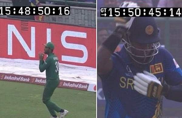 25ാം ഓവറിലെ രണ്ടാം പന്തില് സദീര സമരവിക്രമ പുറത്തായതിനു പിന്നാലെ ക്രീസിലെത്തേണ്ട താരം ആഞ്ചലോ മാത്യൂസായിരുന്നു. എന്നാല് ഹെല്മറ്റിലെ പ്രശ്നം പരിഹരിക്കാനുള്ള ശ്രമത്തിനിടെ താരം ക്രീസിലെത്താന് വൈകി.