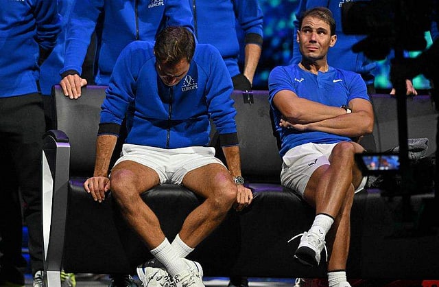 ലണ്ടന്: സ്വിസ് ഇതിഹാസം കോര്ട്ടിനോട് വിടപറയുന്ന നിമിഷങ്ങളാണ് ഇപ്പോള് കായിക പ്രേമികളുടെ ഹൃദയം തൊടുന്നത്. കരിയറിലുടനീളം തനിക്ക് വെല്ലുവിളി തീര്ത്ത റാഫേല് നദാലിനൊപ്പം നിന്ന് അവസാന മത്സരം കളിച്ച് ഫെഡറര് മടങ്ങി. ഈ സമയം ഫെഡറര്ക്കൊപ്പം കണ്ണീരടക്കാന് നദാലും പ്രയാസപ്പെട്ടു.