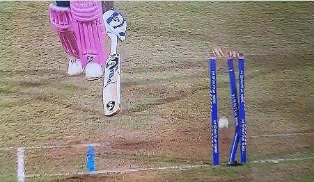 സ്റ്റംപ് മുറിഞ്ഞതോടെ പുതിയ സ്റ്റംപ് ഫിറ്റ് ചെയ്താണ് കളി പുനരാരംഭിച്ചത്. അഞ്ച് കളികളില് നാലാം വിജയം സ്വന്തമാക്കി ഗുജറാത്ത് പോയിന്റ് പട്ടികയില് ഒന്നാം സ്ഥാനത്തേക്ക് കയറുകയും ചെയ്തു.