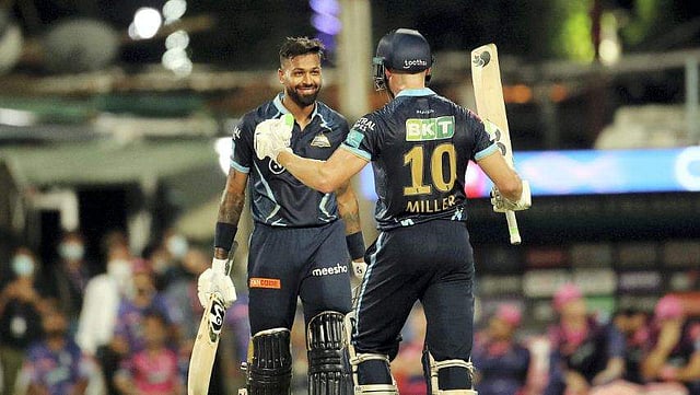 ശുഭ്മാന് ഗില്ലും മാത്യു വേഡും ചേര്ന്ന് 72 റണ്സിന്റെ കൂട്ടുകെട്ട് കണ്ടെത്തി. 31 റണ്സ് എടുത്ത ഗില്ലിനെ ദേവ്ദത്ത് പടിക്കല് റണ്ഔട്ടാക്കി. മാത്യു വേഡ് 30 പന്തില് നിന്ന് 35 റണ്സ് എടുത്തു. ഗില് പുറത്തായതിന് പിന്നാലെ വന്ന ഹര്ദിക് പാണ്ഡ്യ സ്കോറിങ്ങിന്റെ വേഗം കൂട്ടി. 27 പന്തില് നിന്ന് ഹര്ദിക് 40 റണ്സ് നേടി. മറുവശത്ത് മില്ലറും തകര്ത്തടിച്ചതോടെ അവസാന പന്തിലേക്ക് കാത്ത് നില്ക്കാതെ ഗുജറാത്ത് ഫൈനല് ഉറപ്പിച്ചു.