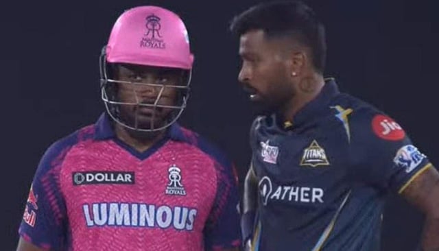 പവർ പ്ലേയിൽ രണ്ട് വിക്കറ്റുകൾ നഷ്ടപ്പെട്ട് രാജസ്ഥാൻ പതറി നിൽക്കുന്നതനിടെയാണ് ഹർദിക് സഞ്ജുവിന് അടുത്തെത്തി എന്തോ പറയുന്നത്. ഇതിന് ശാന്തനായി തല കുലുക്കുകയല്ലാതെ സഞ്ജു മറുപടി ഒന്നും പറയുന്നില്ല. പിന്നീടാണ് സ്റ്റേഡിയത്തെ തീ പിടിപ്പിച്ച ഇന്നിങ്സിന്റെ പിറവി.