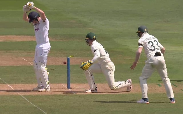 എന്നാല് പന്ത് ബ്രൂകിന്റെ തൊട്ടരികില് വീണു നേരെ കൊണ്ടത് സ്റ്റംപില്. പിന്നാലെ ബെയ്ല് തെറിച്ചു. പന്ത് നിലത്തു വീണ് മാറിപ്പോകുമെന്ന പ്രതീക്ഷയിലായിരുന്നു ബ്രൂക്. എന്നാല് പന്ത് കൊണ്ടു ബെയ്ല് വീഴുകയായിരുന്നു.
