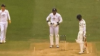 '450ന് ഡിക്ലയർ ചെയ്യുമോ. ശുഭ്മാൻ നാളെ മഴ പെയ്യാൻ സാധ്യതയുണ്ട്. അര ദിവസമാണ് ബാക്കിയുള്ളത്. ഉച്ചയ്ക്ക് ശേഷവും മഴ പെയ്യും'- ബ്രൂക്ക് പറഞ്ഞു. 'ഞങ്ങളുടെ നിർഭാഗ്യം'- എന്നായിരുന്നു ഗില്ലിന്റെ പ്രതികരണം. 'എങ്കിൽ സമനിലയിൽ പിരിഞ്ഞു കൂടെ'- ബ്രൂക്കിന്റെ ചോദ്യം. ഇത്രയുമാണ് വിഡിയോയിലെ സംഭാഷണം.