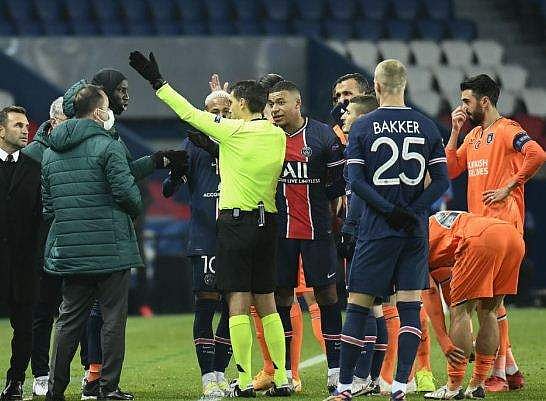 പിഎസ്ജി - ഇസ്താംബുള്‍ ബസക്‌സെര്‍ മത്സരത്തിനിടെ അസിസ്റ്റന്റ് റഫറിയാണ് സഹ പരീശീലകനെ വംശീയമായി അധിക്ഷേപിക്കുന്ന പരാമര്‍ശങ്ങള്‍ നടത്തിയത്. ഗ്രൂപ്പ് എച്ചിലെ അവസാന മത്സരത്തില്‍ ഇരു ടീമുകളും പോരടിക്കുന്നതിനിടെയാണ് മത്സരത്തിന്റെ ഒഫീഷ്യല്‍ തന്നെ വംശീയച്ചുവയുള്ള പരാമര്‍ശവുമായി വിവാദത്തില്‍ ചാടിയത്. തുര്‍ക്കി ക്ലബ്ബായ ബസക്‌സെറിന്റെ സഹപരിശീലകനെയാണ് വംശീയച്ചുവയുള്ള പരാമര്‍ശത്തിലൂടെ ഒഫീഷ്യല്‍ അപമാനിച്ചത്. ഇതില്‍ പ്രതിഷേധിച്ച് ബസെക്‌സര്‍ താരങ്ങള്‍ മത്സരം ബഹിഷ്‌കരിച്ച് ഗ്രൗണ്ടില്‍ നിന്ന് മടങ്ങി. ഇതിനു പിന്നാലെ പിഎസ്ജി താരങ്ങളും അവര്‍ക്കു പിന്തുണ പ്രഖ്യാപിച്ച് തിരികെപ്പോയി.