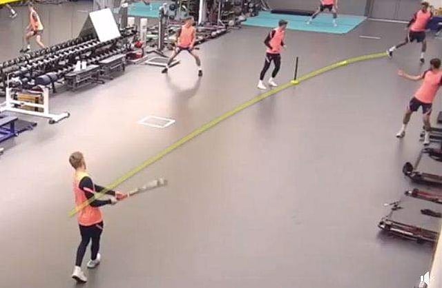 ഓഫ് സെഷനുകളില് ഒന്നില് ഇന്ഡോറില് ക്രിക്കറ്റ് കളിക്കുകയാണ് ടോട്ടനം കളിക്കാര്. ഹാരി കെയ്ന്, ഹാരി വിന്ക്സ്, ബെയ്ല്, ഡെലെ അലി എന്നിവര് ബാറ്റും പന്തുമായി കളിക്കാന് കൂടി. ഈ സമയം തകര്പ്പനൊരു ക്യാച്ചാണ് അലിയില് നിന്ന് വന്നത്. തന്റെ ബാക്ക്ഹീല് കൊണ്ട് പന്ത് ഉയര്ത്തിയ അലി, ഒറ്റക്കൈ കൊണ്ട് പന്ത് കൈക്കലാക്കി.