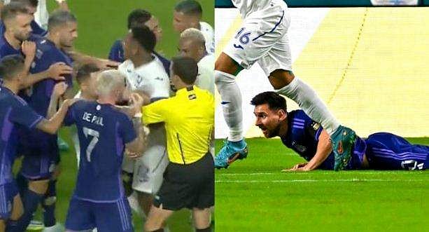 അര്‍ജന്റൈന്‍ ഇന്നിങ്‌സിന്റെ 39ാം ഓവറിലാണ് സംഭവം. ഹോണ്ടുറാസ് താരം ഡെയ്ബി ഫ്‌ലോറസ് ആണ് മെസിയെ ഫൗള്‍ ചെയ്തത്. മെസി വീണതോടെ ഹോണ്ടുറാസ് താരത്തിന് നേര്‍ക്ക് അര്‍ജന്റൈന്‍ കളിക്കാര്‍ പാഞ്ഞടുത്തു. ഇതോടെ ഇരു ടീമുകള്‍ തമ്മില്‍ വാക്കുതര്‍ക്കമുണ്ടായി.