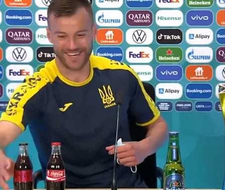 കൊക്ക കോളയുടേയും ഹെനികിനിന്റേയും കുപ്പി യാർമേലെൻകോവ് തന്റെ അടുത്തേക്ക് ചേർത്ത് വയ്ക്കുന്നു. എന്നിട്ട് തന്നെ ബന്ധപ്പെടാനാണ് കമ്പനികളോട് താരം പറയുന്നത്. സ്പോൺസർഷിപ്പ് ഡീൽ എന്നതിലേക്കാണ് രസകരമായി ഉക്രെയ്ൻ താരം പറഞ്ഞെത്തുന്നത്.