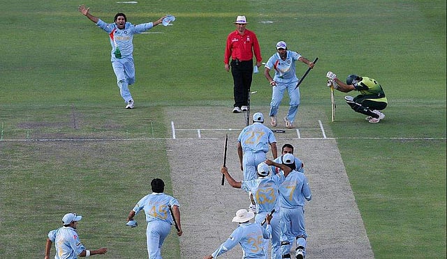 അവസാന ഓവറിൽ 13 റൺസായിരുന്നു കിരീടത്തിലേക്ക് പാകിസ്ഥാന്റെ ദൂരം. ധോനി പന്ത് ഏൽപ്പിച്ചതാകട്ടെ ജോഗീന്ദർ ശർമയെയും. ആദ്യ പന്ത് വൈഡ് ആയതോടെ പാകിസ്ഥാന് ഒരു റൺസ്. ആറ് പന്തിൽ വേണ്ടത് 12 റൺസ്. അടുത്ത് പന്ത് ഡോട്ട് ബോൾ. എന്നാൽ രണ്ടാം പന്തിൽ ജോഗീന്ദറിന്റെ ഫുൾ ടോസ് മിസ്ബ സിക്സർ പറത്തി.