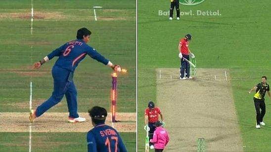 ഇംഗ്ലണ്ട് ഇന്നിങ്സിന്റെ 5ാം ഓവറിലാണ് സംഭവം. ഡേവിഡ് മലന് സ്ട്രൈക്ക് ചെയ്യ്ുമ്പോള് നോണ്സ്ട്രൈക്കേഴ്സ് എന്ഡില് ബട്ട്ലര് ക്രീസ് ലൈന് വിട്ടിറങ്ങി. എന്നാല് ബട്ട്ലര് തന്റെ ഡെലിവറി പൂര്ത്തിയാക്കി. സ്റ്റാര്ക്കിന്റെ നേരെയാണ് മലന് അടിച്ചത്. പന്ത് കയ്യിലെടുത്ത് റണ്അപ്പിനായി സ്റ്റാര്ക്ക് മടങ്ങുമ്പോഴാണ് ബട്ട്ലറിന് മുന്നറിയിപ്പ് നല്കിയത്.