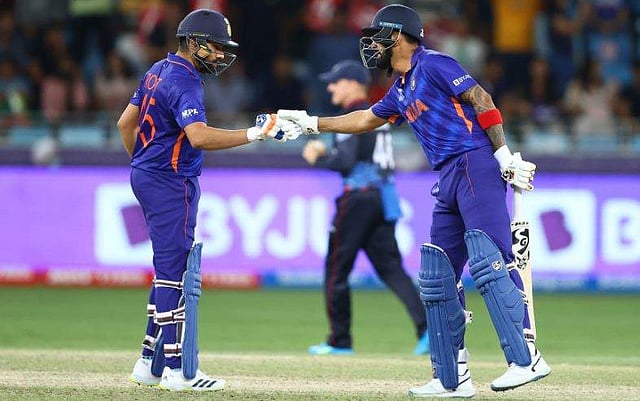 രോഹിത് 37 പന്തിൽ നിന്ന് രണ്ട് സിക്‌സും ഏഴ് ഫോറുമടക്കം 56 റൺസെടുത്തു. 36 പന്തുകൾ നേരിട്ട രാഹുൽ രണ്ട് സിക്‌സും നാല് ഫോറുമടക്കം 54 റൺസോടെ പുറത്താകാതെ നിന്നു. ഇരുവരും ചേർന്ന് ഓപ്പണിങ് വിക്കറ്റിൽ 86 റൺസിന്റെ കൂട്ടുകെട്ടുണ്ടാക്കി. സൂര്യകുമാർ യാദവ് 19 പന്തിൽ നിന്ന് 25 റൺസോടെ പുറത്താകാതെ നിന്നു.