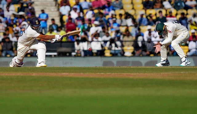നാഗ്പുര്‍: ഒസ്‌ട്രേലിയക്കെതിരായ ഒന്നാം ക്രിക്കറ്റ് ടെസ്റ്റില്‍ സന്ദര്‍ശകരെ 177 റണ്‍സിന് പുറത്താക്കിയ ഇന്ത്യ ഒന്നാം ഇന്നിങ്‌സ് ബാറ്റിങ് തുടങ്ങി. ആദ്യ ദിനത്തിലെ കളി അവസാനിക്കുമ്പോള്‍ ഇന്ത്യ ഒരു വിക്കറ്റ് നഷ്ടത്തില്‍ 77 റണ്‍സെന്ന നിലയില്‍. നാല് ദിവസവും ഒന്‍പത് വിക്കറ്റും കൈയിലിരിക്കെ ഓസീസ് സ്‌കോറിനൊപ്പമെത്താന്‍ ഇന്ത്യക്ക് വേണ്ടത് 100 റണ്‍സ് കൂടി.
