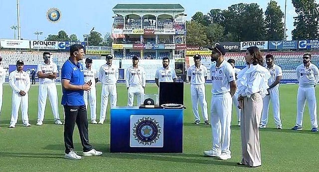നൂറാം മത്സരത്തിനിറങ്ങുന്ന വിരാട് കോഹ്‌ലിക്ക് ഇന്ത്യന്‍ കോച്ച് രാഹുല്‍ ദ്രാവിഡ് സ്‌പെഷല്‍ ക്യാപ് നല്‍കി ആദരിച്ചു. പ്രത്യേക മൊമെന്റോയും നല്‍കി. ചടങ്ങില്‍ കോഹ്‌ലിയുടെ ഭാര്യ അനുഷ്‌കയും പങ്കെടുത്തു.