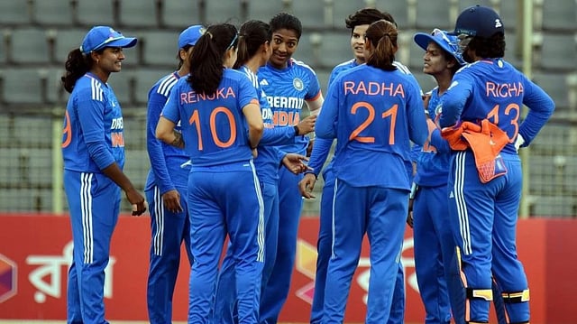 സ്മൃതി മന്ധാന (33), ദയാളന് ഹേമലത (37), ഹര്മന്പ്രീത് കൗര് (30) എന്നിവര് ഇന്ത്യക്കായി തിളങ്ങി. റിച്ച ഘോഷ് 28 റണ്സുമായി പുറത്താകാതെ നിന്നു. മലയാളി താരം സജന സജീവനു ബാറ്റിങില് തിളങ്ങാനായില്ല. താരം 1 റണ്ണുമായി പുറത്തായി.