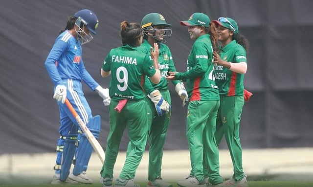 ബംഗ്ലാദേശിനായി റബയ ഖാന് മൂന്ന് വിക്കറ്റുകള് വീഴ്ത്തി. സുല്ത്താന ഖാതൂന് രണ്ട് വിക്കറ്റുകള് നേടി. നഹിദ അക്തര്, ഫഹിമ ഖാതുന്, ഷോര്ന അക്തര് എന്നിവര് ഓരോ വിക്കറ്റെടുത്തു.