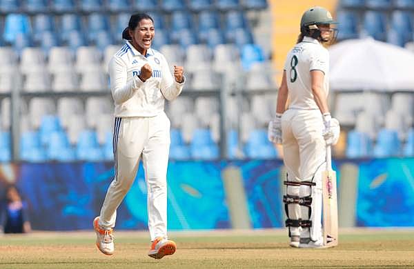 ഏഴ് വിക്കറ്റ് നഷ്ടത്തില് 376 റണ്സെന്ന നിലയിലാണ് ഇന്ത്യ രണ്ടാം ദിനം കളി നിര്ത്തിയത്. 78 റണ്സെടുത്ത ദീപ്തി ശര്മയാണ് ഇന്ത്യയുടെ ടോപ് സ്കോറര്. സ്മൃതി (74), ജെമിമ റോഡ്രിഗസ് (73), റിച്ച ഘോഷ് (52) എന്നിവരും അര്ധ സെഞ്ച്വറി നേടി. പൂജ വസ്ത്രാകറും (47) സ്കോറിലേക്ക് സംഭാവ നല്കി. രേണുക സിങ് (8) ആണ് അവസാനം പുറത്തായത്. രാജേശ്വരി ഗെയ്ക്വാദ് റണ്ണൊന്നുമില്ലാതെ പുറത്താകാതെ നിന്നു.