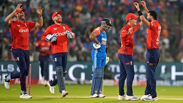 പുനെ: നാലാം ടി20 പോരാട്ടത്തില് ആദ്യം ബാറ്റിങിന് ഇറങ്ങിയ ഇന്ത്യക്ക് തകര്ച്ച. മലയാളി താരം സഞ്ജു സാംസണ് വീണ്ടും നിരാശപ്പെടുത്തി. താരം ഒരു റണ്സില് മടങ്ങി. പിന്നാലെ വന്ന തിലക് വര്മ, ക്യാപ്റ്റന് സൂര്യകുമാര് യാദവ് എന്നിവരും ബാറ്റിങില് പരാജയപ്പെട്ടു. ഇരുവരും പൂജ്യത്തില് മടങ്ങി.