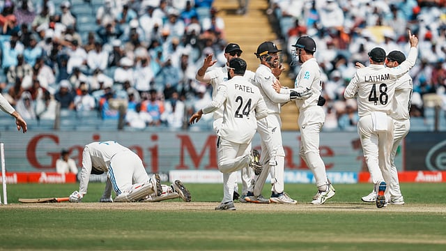 നേരത്തെ 33 റണ്സ് വഴങ്ങി ഏഴ് വിക്കറ്റ് വീഴ്ത്തിയ മിച്ചല് സാന്റ്നര് ആണ് ഒന്നാം ഇന്നിങ്സില് ഇന്ത്യയുടെ അന്തകനായത്. 38 റണ്സ് എടുത്ത രവീന്ദ്ര ജഡേജയാണ് ഇന്ത്യയുടെ ടോപ് സ്കോറര്. 30 റണ്സ് വീതം എടുത്ത യശ്വസി ജയ്സ്വാളും ശുഭ്മാന് ഗില്ലുമാണ് ഭേദപ്പെട്ട പ്രകടനം പുറത്തടുത്ത മറ്റു രണ്ട് പേര്.