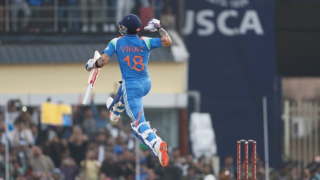 38ാം ഓവറില് സെഞ്ച്വറി തികച്ച കോഹ് ലി അടുത്ത ഓവറില് തകര്ത്തടിച്ചു. രണ്ട് വീതം ഫോറും സിക്സും നേടിയതോടെ ഓവറില് ഇന്ത്യ 21 റണ്സാണ് അടിച്ചെടുത്തത്. എന്നാല് 43-ാം ഓവറില് കോഹ് ലിയെ നാന്ദ്രെ ബര്ഗര് പുറത്താക്കി. 120 പന്തില് നിന്ന് 11 ഫോറുകളുടെയും ഏഴു സിക്സറിന്റെയും അകമ്പടിയോടെ 135 റണ്സെടുത്താണ് താരം മടങ്ങിയത്. പിന്നീട് കെ.എല്. രാഹുലും രവീന്ദ്ര ജഡേജയും ചേര്ന്ന് സ്കോറുയര്ത്തി. ആറാം വിക്കറ്റില് മികച്ച കൂട്ടുകെട്ട് പടുത്തുയര്ത്തിയ ഇരുവരും ടീമിനെ മുന്നൂറ് കടത്തി. ക്യാപ്റ്റനായെത്തിയ മത്സരത്തില് രാഹുല് അര്ധസെഞ്ചുറിയോടെ തിളങ്ങി. രാഹുല് 56 പന്തില് നിന്ന് 60 റണ്സെടുത്ത് പുറത്തായി. ജഡേജ 20 പന്തില് നിന്ന് 32 റണ്സെടുത്തു. ഒടുക്കം 50 ഓവറില് എട്ടു വിക്കറ്റ് നഷ്ടത്തില് 349 റണ്സിന് ഇന്ത്യന് ഇന്നിങ്സ് അവസാനിച്ചു.