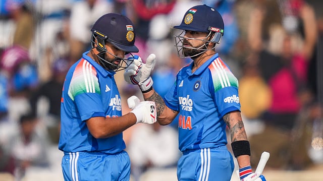 ആദ്യം അര്ധ സെഞ്ച്വറിയിലെത്തിയത് കോഹ്ലിയാണ്. താരം 47ല് നിന്നു തുടരെ രണ്ട് സിക്സുകള് പായിച്ച് 59 റണ്സിലെത്തി. നാല് വീതം സിക്സും ഫോറും സഹിതമാണ് കോഹ്ലി അര്ധ സെഞ്ച്വറിയിലെത്തിയത്. 43 പന്തില് 5 ഫോറും 2 സിക്സും സഹിതമാണ് രോഹിത് അര്ധ സെഞ്ച്വറിയിലെത്തിയത്.
