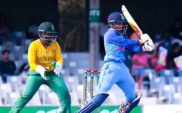 ദക്ഷിണാഫ്രിക്കന് ബൗളര്മാര് മികച്ച രീതിയില് പന്തെറിഞ്ഞതോടെ ഇന്ത്യ റണ്സ് കണ്ടെത്താന് ബുദ്ധിമുട്ടി. നോന്കുലുലേകോ മ്ലാബ നാലോവറില് 16 റണ്സ് മാത്രം വഴങ്ങി രണ്ട് വിക്കറ്റുകള് നേടി. അയബോംഗ ഖക, സുനെ ലുസ് എന്നിവര് ഓരോ വിക്കറ്റ് വീഴ്ത്തി.