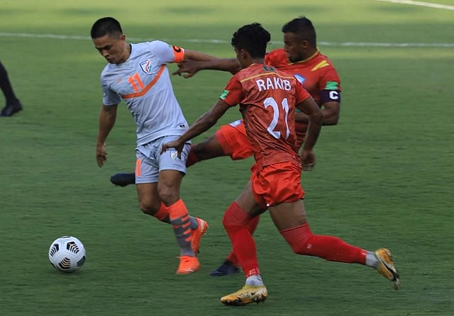 ദോഹ: ലോകകപ്പ് ഫുട്ബോള് യോഗ്യതാ പോരാട്ടത്തില് ഇന്ത്യക്ക് ആശ്വാസ വിജയം. ബംഗ്ലാദേശിനെതിരായ പോരാട്ടം ഇന്ത്യ മറുപടിയില്ലാത്ത രണ്ട് ഗോളുകള്ക്ക് വിജയിച്ചു. ക്യാപ്റ്റന് സുനില് ഛേത്രി ഇരട്ട ഗോളുകളുമായി കളം നിറഞ്ഞ പോരാട്ടത്തിലാണ് ഇന്ത്യ തകര്പ്പന് വിജയം സ്വന്തമാക്കിയത്. 79, 92 മിനിറ്റുകളിലാണ് ഛേത്രിയുടെ എണ്ണം പറഞ്ഞ ഗോളുകള്. അന്താരാഷ്ട്ര ഫുട്ബോളിലെ ഗോള് നേട്ടം ഛേത്രി 73 ആക്കി ഉയര്ത്തി.