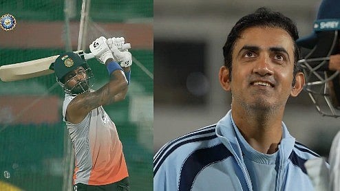 കൂറ്റൻ സിക്സറുകൾ അടിച്ചാണ് ഹർദിക് പാണ്ഡ്യ നെറ്റ്സിൽ പരിശീലനം ആരംഭിച്ചത്. പാണ്ഡ്യയുടെ ഷോട്ട് ഗാലറിയിൽ എത്തിയതോടെ കോച്ച് ഗൗതം ഗംഭീറിനും ക്യാപ്റ്റൻ സൂര്യകുമാർ യാദവിനും കൗതുകം അടക്കാനായില്ല.
