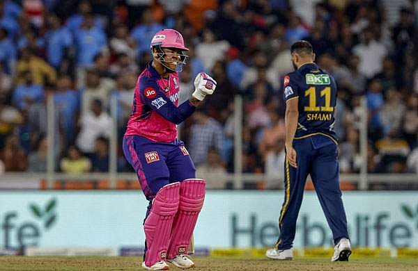 മറുപടി ബാറ്റിങ്ങിന് ഇറങ്ങിയ രാജസ്ഥാന്റെ തുടക്കം അത്ര മികച്ചതായിരുന്നില്ല. ആദ്യ മൂന്ന് ഓവറുകൾക്കുള്ളിൽ തന്നെ ഓപ്പണർമാരായ യശ്വസി ജയ്സ്വവാൾ (1), ജോസ് ബട്ലർ (0) എന്നിവരെ നഷ്ടമായി. അതിനു പിന്നാലെയാണ് സഞ്ജു സാംസണും ദേവ്ദത്ത് പടിക്കലും ക്രീസിൽ എത്തുന്നത്. ഇരുവരും ചേർന്ന് ഭേദപ്പെട്ട പ്രകടനം തന്നെ കാഴ്ചവെച്ചു. ഒൻപതാം ഓവറിൽ പടിക്കലിനെ റാഷിദ് ഖാൻ, മോഹിത് ശർമയുടെ കൈകളിൽ എത്തിച്ചു. 25 പന്തിൽ 26 റൺസായിരുന്നു ദേവ്ദത്തിന്റെ സമ്പാദ്യം.