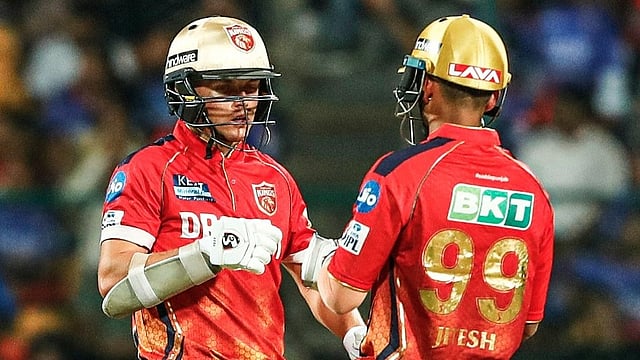 72ല് നില്ക്കെ മാക്സ്വെലിന്റെ പന്തില് സിങ് പുറത്തായി. ലിയാം ലിവിങ്സറ്റണിനെ കൂട്ടുപിടിച്ച് ധവാന് പോരാട്ടത്തിന് ശ്രമിച്ചെങ്കിലും സ്കോര് 98ല് നില്ക്കെ ലിവിങ്സ്റ്റണ് പുറത്തായി (13 പന്തില്17). തൊട്ടടുത്ത പന്തില് തന്നെ ധവാനും പുറത്തായതോടെ പഞ്ചാബ് പതറി. പിന്നീട് ഗ്രൗണ്ടിലെത്തിയ സാം കറനും(17 പന്തില് 23) വിക്കറ്റ് കീപ്പര് ജിതേഷ് ശര്മയും കൂടിയാണ് സ്കോര് 150ല് എത്തിച്ചത്.