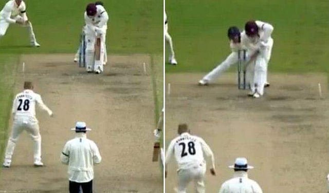 ലാന്കഷൈറിന്റെ മാറ്റ് പാര്കിസന്ന്റെ കൈകളില് നിന്നാണ് നോര്താംഷയറിന്റെ ആദം റോസിങ്ടണെ പുറത്താക്കാന് അതിശയിപ്പിക്കുന്ന ഡെലിവറി വന്നത്. ലെഗ് സൈഡിലേക്ക് വന്ന പന്ത് പിച്ച് ചെയ്തതിന് ശേഷം പൊടുന്നനെ ടേണ് ചെയ്ത് ഓഫ് സ്റ്റംപ് ഇളക്കി.