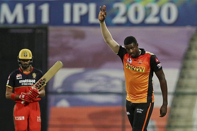 അബുദാബി: രണ്ടക്കം കടക്കുന്നതിന് മുന്പേ കോഹ് ലിയേയും ദേവ്ദത്ത് പടിക്കലിനേയും മടക്കിയാണ് ഹൈദരാബാദിന് തുടക്കത്തില് തന്നെ ഹോള്ഡര് ആധിപത്യം നേടിക്കൊടുത്തത്. മൂന്ന് വിക്കറ്റ് പിഴുതതിന് പിന്നാലെ ബാറ്റിങ്ങില് കരുതലോടെ കളിച്ചും ഹോള്ഡര് തന്റെ റോള് ഭംഗിയാക്കി. വിക്കറ്റ് നഷ്ടപ്പെടുത്താതെ വില്യംസണിന് ഒപ്പം നിന്ന് ഹോള്ഡര് ഹൈദരാബാദിന്റെ ഫൈനല് പ്രതീക്ഷകള് നിലനിര്ത്തി.
