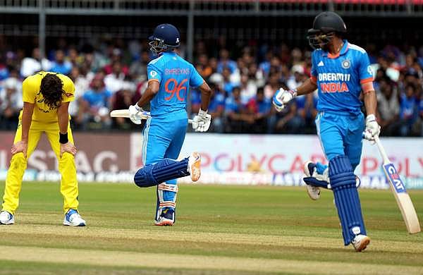 51 പന്തില് 4 സിക്സും 4 ഫോറും സഹിതം ശുഭ്മാന് 67 റണ്സും 45 പന്തില് 55 റണ്സുമായി ശ്രേയസും ബാറ്റിങ് തുടരുന്നു. ശ്രേയസ് ഏഴ് ഫോറും ഒരു സിക്സും നേടി. ഇരുവരും ചേര്ന്നു രണ്ടാം വിക്കറ്റില് ഇതുവരെയായി 128 റണ്സ് കൂട്ടുകെട്ടുയര്ത്തി.