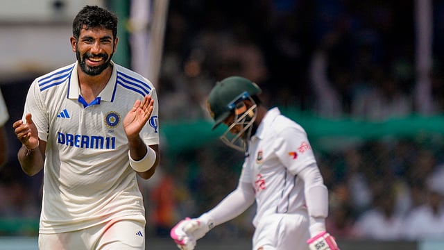 കാണ്പുര്: രണ്ട് ദിവസം ഒരു പന്ത് പോലും എറിയാന് സാധിക്കാതെ പോയ ടെസ്റ്റ്, വെറും രണ്ടര ദിവസം കൊണ്ട് പോക്കറ്റിലാക്കി ഇന്ത്യ ജയിച്ച് പരമ്പര തൂത്തുവാരിയത് കണക്കുകൂട്ടിയ തന്ത്രങ്ങള് കൃത്യമായി ലക്ഷ്യം കണ്ടതോടെ. അഞ്ചാം ദിനത്തില് ഇന്ത്യയുടെ ലീഡ് മറികടക്കാനായി പൊരുതി, സമനിലയെങ്കിലും സ്വപ്നം കണ്ട ബംഗ്ലാദേശിന്റെ എല്ലാ പ്രതീക്ഷകളും അവസാനിപ്പിച്ചത് ജസ്പ്രിത് ബുംറയുടെ ബൗളിങായിരുന്നു.