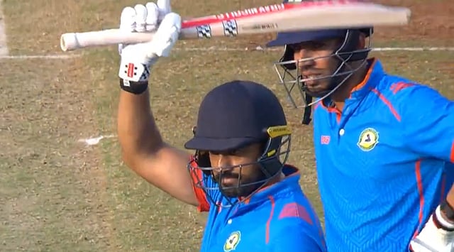 ആദ്യം ബാറ്റ് ചെയ്ത വിദര്ഭയ്ക്കായി ധ്രുവ് ഷോറി 114 റണ്സും യാഷ് റാത്തോഡ് 116 റണ്സും നേടി മിന്നും തുടക്കമാണ് നല്കിയത്. ഇരുവരും ചേര്ന്നു ഒന്നാം ഇന്നിങ്സില് 224 റണ്സ് ചേര്ത്തു. മൂന്നാമനായി ക്രീസിലെത്തിയ കരുണ് നായര് 44 പന്തില് 9 ഫോറും 5 സിക്സും സഹിതം 88 റണ്സുമായി പുറത്താകാതെ നിന്നു. ജിതേഷ് 33 പന്തില് 3 വീതം സിക്സും ഫോറും സഹിതം 51 റണ്സും കണ്ടെത്തി.