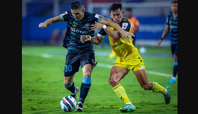 ഫറ്റോർഡ: ഐഎസ്എൽ കിരീട പോരാട്ടത്തിന്റെ ആദ്യ പകുതി ഗോൾരഹിതം. കേരള ബ്ലാസ്റ്റേഴ്സും ഹൈദരാബാദ് എഫ്സിയും തമ്മിലുള്ള പോരാട്ടത്തിന്റെ ആദ്യ പകുതിയിൽ ഇരു ടീമുകളും ഗോളടിക്കാതെ പിരിഞ്ഞു. തുടക്കം മുതൽ ആക്രമണ മൂഡിലായിരുന്നു ബ്ലാസ്റ്റേഴ്സ്. മികച്ച അവസരങ്ങൾ ഒരുക്കാനും കൊമ്പൻമാർക്കായി. 39ാം മിനിറ്റിൽ ആൽവരോ വാസ്ക്വസിന്റെ ഗോൾ ശ്രമം പോസ്റ്റിൽ തട്ടിത്തെറിച്ചത് നിരാശയായി.
