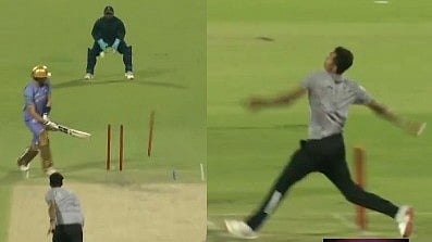 200 റൺസ് ലക്ഷ്യം പിന്തുടർന്ന അജിന്ക്യ രഹാനെയുടെ നേതൃത്വത്തിലുള്ള പർപ്പിൾ നൈറ്റ്സിന് മികച്ച തുടക്കമാണ് ലഭിച്ചത്. ഫിന് അല്ലെൻ വെറും 10 പന്തിൽ 23 റൺസ് നേടി മികച്ച ഫോമിൽ നിൽക്കുമ്പോഴായിരുന്നു സെയ്നിയുടെ പന്ത് മത്സരത്തിന്റെ ഗതി മാറ്റിയത്. ഓഫ്സൈഡിലേക്ക് മാറി സ്കൂപ്പ് ചെയ്യാനുള്ള ശ്രമം പരാജയപ്പെടുക ആയിരുന്നു. താരത്തിന്റെ ബാറ്റിൽ തട്ടി തിരിഞ്ഞ പന്ത് നേരിട്ട് സ്റ്റംപിലേക്ക് പതിച്ചു. ഇതിന്റെ വിഡിയോ ഇപ്പോൾ സോഷ്യൽ മീഡിയയിൽ വൈറലായി മാറിയിട്ടുണ്ട്.