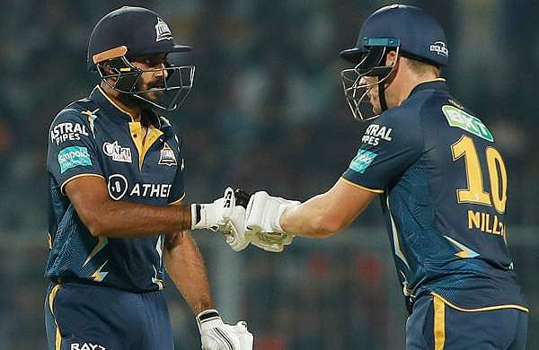 അര്ധ സെഞ്ചറി നേടിയ വിജയ് ശങ്കര് (24 പന്തില് 51), ഡേവിഡ് മില്ലര് (18 പന്തില് 32) എന്നിവരാണ് ഗുജറാത്തിനെ വിജയത്തിലെത്തിച്ചത്. 35 പന്തില് 49 റണ്സെടുത്ത് ഓപ്പണര് ശുഭ്മന് ഗില്ലും തിളങ്ങി. ഓപ്പണര്മാര് മികച്ച തുടക്കമാണ് ഗുജറാത്തിനു നല്കിയത്. നാല് ഓവറില് 41 റണ്സ് കൂട്ടിച്ചേര്ത്താണ് ഓപ്പണിങ് കൂട്ടുകെട്ട് പിരിഞ്ഞത്. വണ്ഡൗണായി ഇറങ്ങിയ ഗുജറാത്ത് ക്യാപ്റ്റന് ഹാര്ദിക് പാണ്ഡ്യ 20 പന്തില് 26 റണ്സെടുത്തു പുറത്തായി. മധ്യനിരയില് വിജയ് ശങ്കറും ഡേവിഡ് മില്ലറും തകര്ത്തടിച്ചതോടെ 17.5 ഓവറില് ഗുജറാത്ത് വിജയത്തിലെത്തി.
