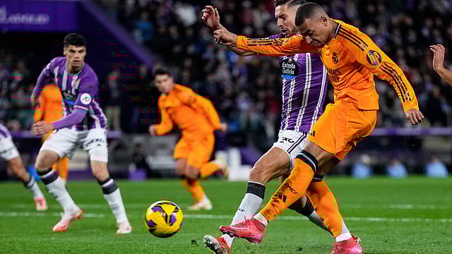 റയല്‍ മാഡ്രിഡ് ജേഴ്‌സിയില്‍ ആദ്യമായി വെട്ടിത്തിളങ്ങി ഫ്രഞ്ച് സൂപ്പര്‍ താരം കിലിയന്‍ എംബാപ്പെ. താരത്തിന്റെ ആദ്യ ഹാട്രിക്ക് മികവില്‍ റയല്‍ എവേ പോരാട്ടത്തില്‍ വല്ലാഡോളിഡിനെ 0-3നു വീഴ്ത്തി. കളിയുടെ 30, 57, ഇഞ്ച്വറി സമയങ്ങളിലാണ് താരം മൂന്ന് ഗോളുകള്‍ വലയിലാക്കിയത്. മൂന്നാം ഗോള്‍ പെനാല്‍റ്റിയില്‍ നിന്നാണ് വന്നത്. ജയത്തോടെ റയല്‍ പോയിന്റ് പട്ടികയില്‍ 49 പോയിന്റുമായി ഒന്നാം സ്ഥാനത്ത്. രണ്ടാമതുള്ള അത്‌ലറ്റിക്കോ മാഡ്രിഡുമായി 4 പോയിന്റിന്റെ മുന്‍തൂക്കം. അത്‌ലറ്റിക്കോ ഇന്നലെ വിയ്യാറയലുമായി 1-1നു സമനിലയില്‍ പിരിഞ്ഞു.